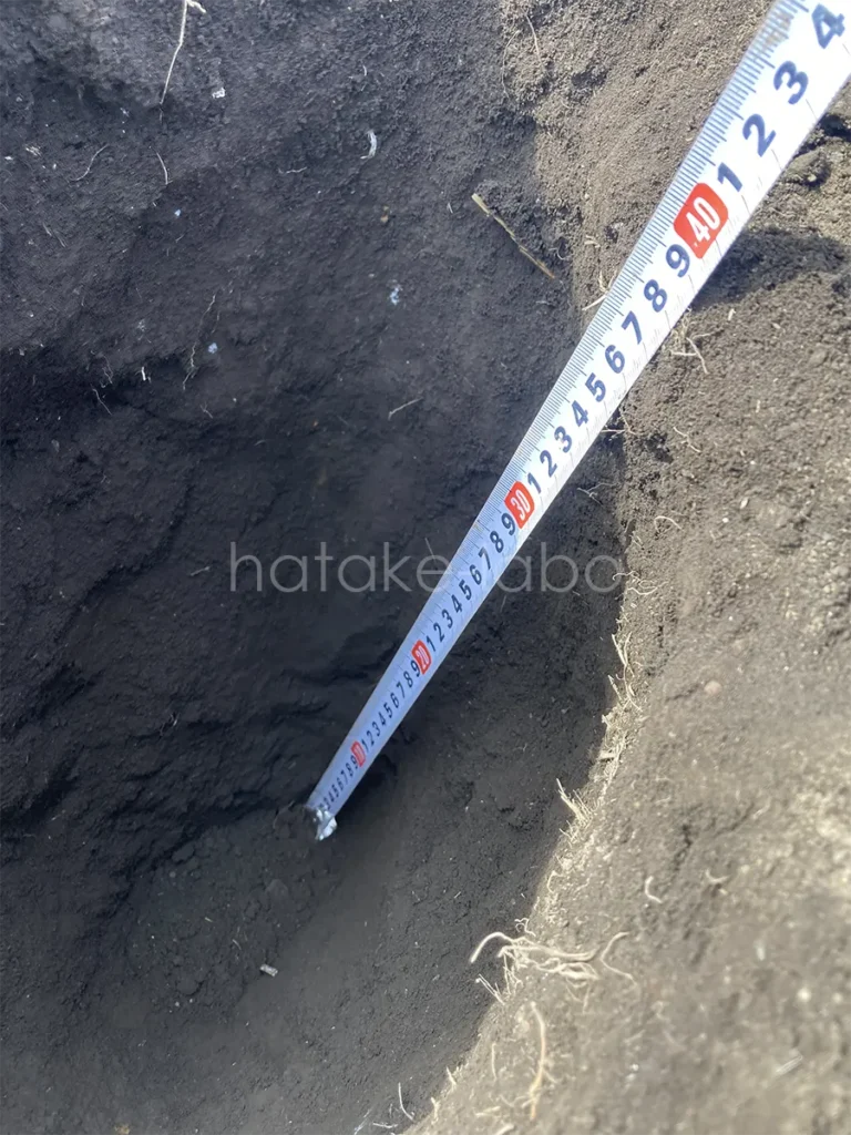 MOA自然農法文化事業団の「私にもできる!自然農法入門」という本を読むと、作土の下層、地中60センチまで掘り下げ、確認をするとあったのだけど…40センチ行って、もうすでに土は固く、力を入れても親指の爪が入らない…。