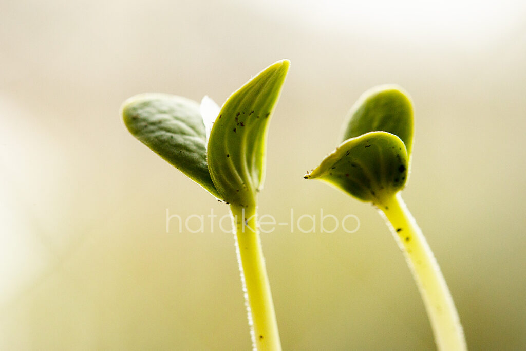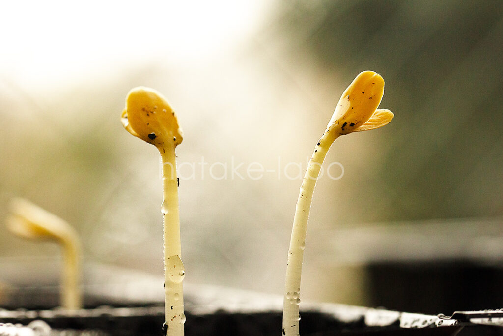 - 発芽直後は黄色い葉が、光合成で緑色になる